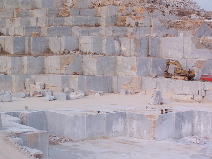Grecja, okolice Kawali w Macedonii. Kamieniołom marmuru wycinanego wprost ze ściany w formie bloków lub płyt